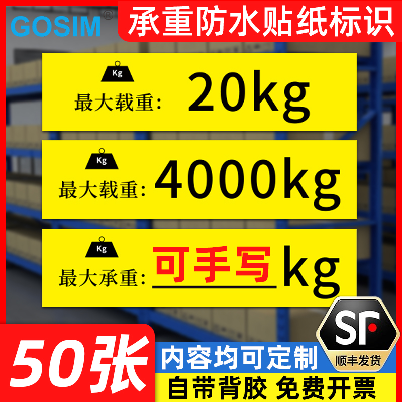 货架载荷限重提示标识牌车贴衡横梁平台承载重承受防水不干胶贴纸