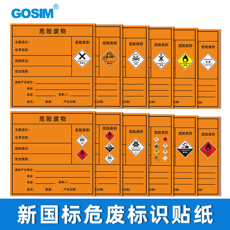 国新GOSIM危险废物标识警示牌石棉易燃标签纸危废间安全警告标志